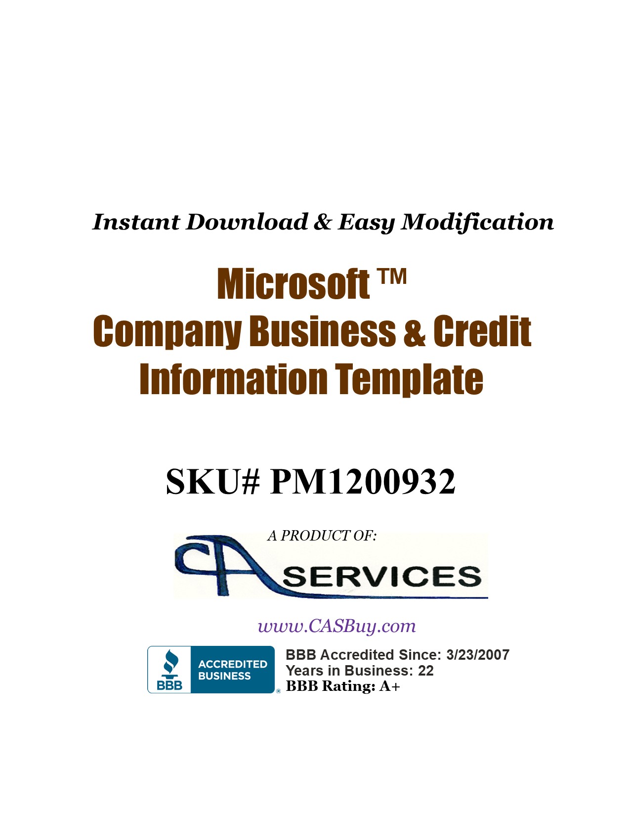 Word based template for providing credit references and company financial information to vendors and subcontractors.